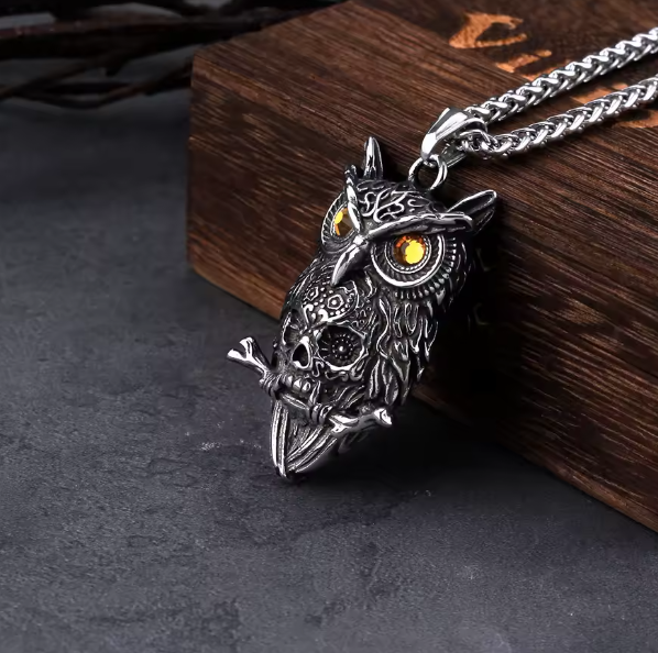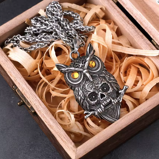 Descoperă Pandantiv Gotic: Stăpâna Nopții, simbolul misterului, al puterii și al înțelepciunii ascunse. Realizat din aliaj metalic rezistent, cu detalii gotice fine și ochi din cristale galbene ce strălucesc ca flăcările în noapte, acest lănțișor este mai mult decât un accesoriu – este o declarație de stil.